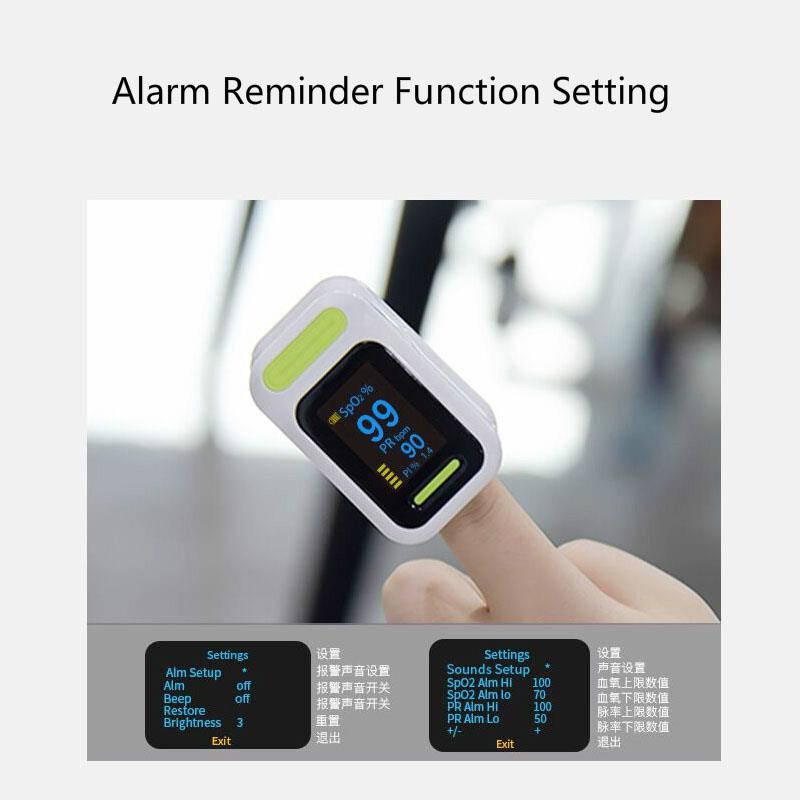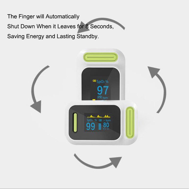 Pirštų pulso oksimetras yra prieinamas ir tikslus būdas patikrinti pulso dažnį ir kraujo prisotinimo deguonimi lygį. Tai taip pat rodo Plethysmograph bangą, kuri garantuoja tikslumą. Savarankiškai reguliuojamas pirštų spaustukas ir paprasta vieno mygtuko konstrukcija leidžia lengvai valdyti. Komplekte su nešiojimo dėklu ir kaklu / riešo virve. Patogu slaugytojui ir gydytojui pakabinti ant kaklo. Mažas nešiojamas dydis leidžia lengvai valdyti ir nešiotis. Tinka naudoti kasdien, bet kada įvertinkite savo sveikatą.