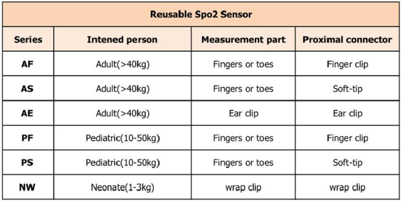 („PF&PS“ serija) Puikiai pagamintas daugkartinio naudojimo „spo2“ jutiklis yra sujungtas su suderinamu pulso oksimetru, kad būtų galima neinvaziškai stebėti arterinio hemoglobino (SpO2) ir pulso dažnio (PR) funkcinį prisotinimą deguonimi 10–50 kg vaikams.